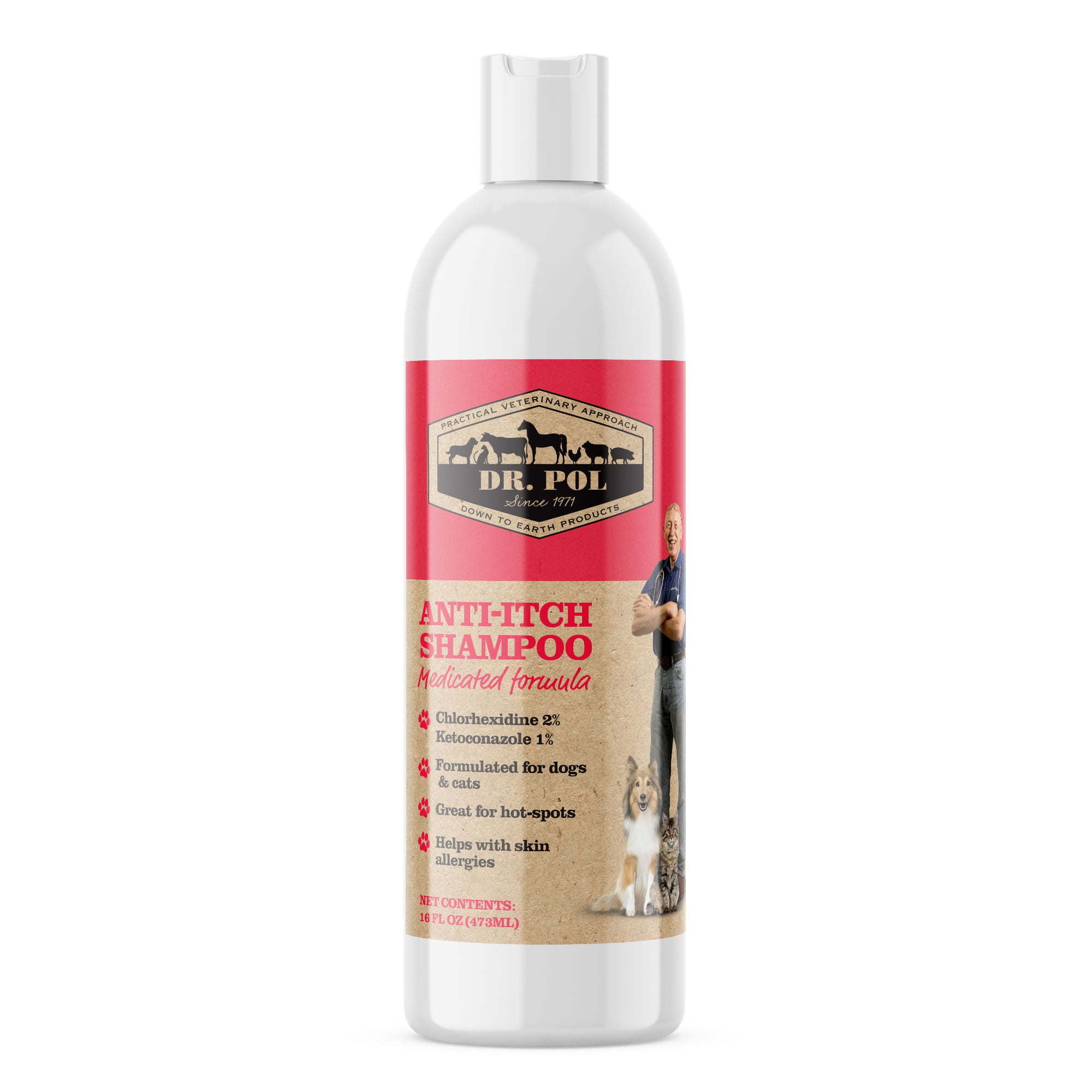 About Dr. Pol Anti Itch Shampoo for Dogs and Cats Ketoconazole and Chlorhexidine for dogs and cats is crucial when it comes to dog wound care or pet anti-itch treatments. That's why Dr. Pol Anti-Itch Shampoo for Dogs and Cats is made with these two active ingredients and gentle inactive ingredients. Itchy skin relief for dog or cat begins with a soothing medicated shampoo; each use of this cat and dog shampoo for allergies and itching can help relieve skin irritations for your pet. Whether you're searching for a dog skin allergies treatment, cat dandruff relief, or even a dog hot spot treatment, these two active ingredients are sure to help. This cat and dog medicated shampoo includes Chlorhexidine and Ketoconazole shampoo ingredients, which attack unfriendlies on your pet's coat to help deeply cleanse. This Dr. Pol anti itch dog shampoo is safe for cats too! Use this medicated shampoo for dogs and cats on pets 12 weeks and older. From a cat acne treatment to a dog hot spot soother, this pet shampoo can help relieve many skin issues. Keep your furry friend clean with Dr. Pol Anti-Itch Shampoo for Dogs and Cats!