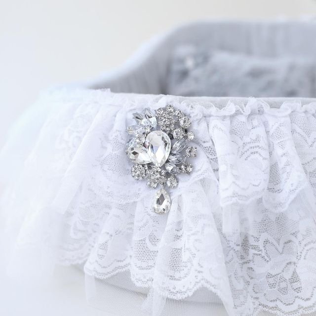 For that beautiful addition to your family, you'll want your pup to have sweet beginnings in our adorable Crib Bed by Hello Doggie, to lull your baby into sweet dreams. Trimmed in two-tiered romantic handmade lace, our cribs also feature a bouquet drop crystal brooch and removable pillow for easy care. Pair with any Hello Doggie Blanket. You'll be the envy of all your friends! Our collection offers four soft colors to choose from.