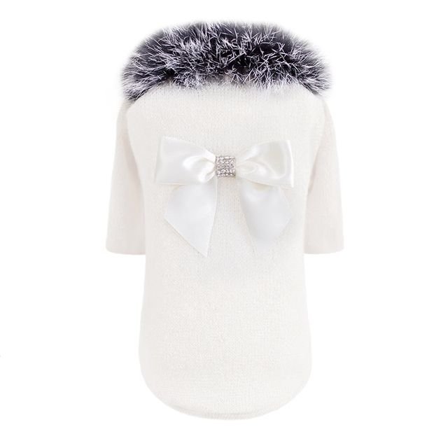 Just in time for the change of season, keep your baby stylish and warm in our new sweater collection. The high society sweater is made from light soft wool and has a faux mink collar, it is accented with our signature bow.