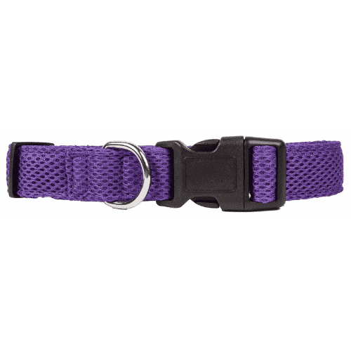 The Pet Life 'Aero Mesh' 360 Degree Dual-Sided Adjustable Mesh Dog Collar offers complete comfort and ventilation. This collar features Dual-sided premium Micro-Mesh plush fabrics that are fused together to create exceptional Breathability. Superior in comfort as compared to conventional Nylon or tougher-grade fabrics that lay around the neck, the Aero-Mesh collar gently cuddles and places less stress around the neck area. Features an Ultra-Sturdy Buckle Clip with a protective mesh layer preventing hairs from getting caught or pulling and a reinforced Stainless steel leash connecting ring meant to withstand high tug pressure. Collar is 100% Water-resistant and Machine Washable. Available in Multiple Sizes and Colors, Matching Leash or Lead Sold Separately.