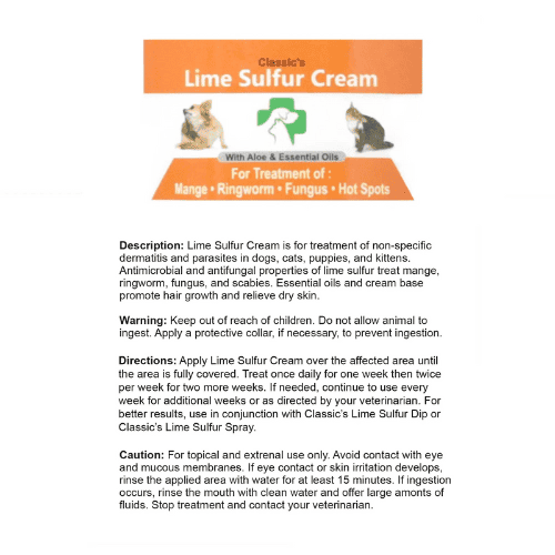 • ALL-AROUND TREATMENT - Unsure of what’s causing your pet’s skin problem? Maybe fungus or parasites or just dry or cracked skin. Our lime sulfur cream has been proven effective to treat Ringworm, Mange, Hot Spots, Fungus, Itchy and Dry Skin, Allergies, Dry Nose, Cracked Paws!