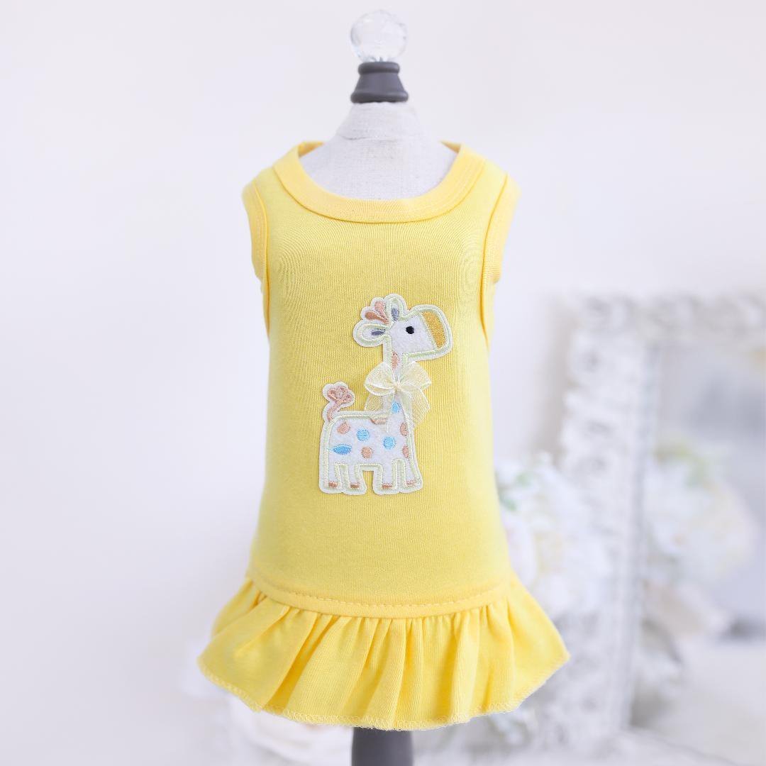 Style your baby in our new dress by Hello Doggie featuring a delicate baby giraffe adorned with a sweet sheer organza yellow bow. Wash on gentle cycle in cold water, no bleach or softener and air dry or tumble on low.