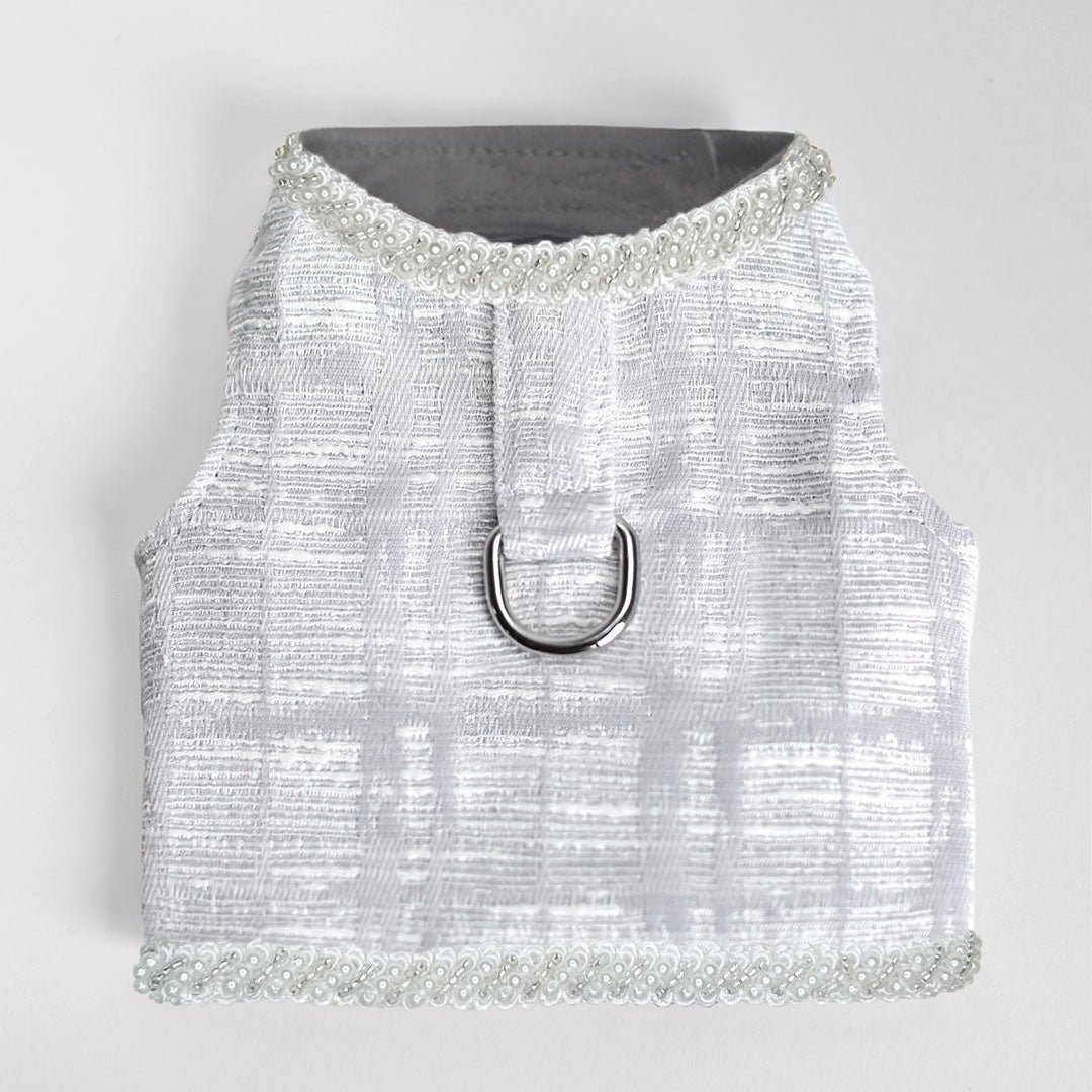 Introducing the Genevieve Dog Harness by Hello Doggie where elegance meets comfort. Crafted from exquisite high-quality fabric, this harness envelops your furry friend in a sumptuous embrace, ensuring both style and comfort for every outing. What truly sets the Genevieve apart is its stunning embellishment of handmade embroidered lace, intricately adorned with delicate pearls that twinkle like stars. This meticulous craftsmanship transforms your pooch’s daily attire into a breathtaking masterpiece, making it the perfect choice for special occasions or everyday elegance. For easy care Spot Clean or wash in cool on delicate, no bleach or softener and air dry or tumble on low.