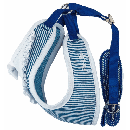 The Pet Life LUXE 'Spawling' 2-in-1 Mesh Reversed Adjustable Dog Harness-Leash w/ Fashion Bowtie features a blended exterior that is reversed with breathable accented Micro-mesh on the Harness for premium comfort. The Harness features well-coordinated stunning vertical patterned stripes that resemble a Kitchen-like smock dress with a well coordinated bowtie that sits above a ruffled smock-like material with wonderfully accented buttoned trims. The back of the harness is completely adjustable with dual stainless steel hooks that connect to the swivel hook on the leash for multi-directional pull. The Spawling harness was specially engineered to limit stress around the stomach by placing light stress around the sternum for proper comfort. Features reinforced stitching for durability. Available in Multiple Sizes and Colors.