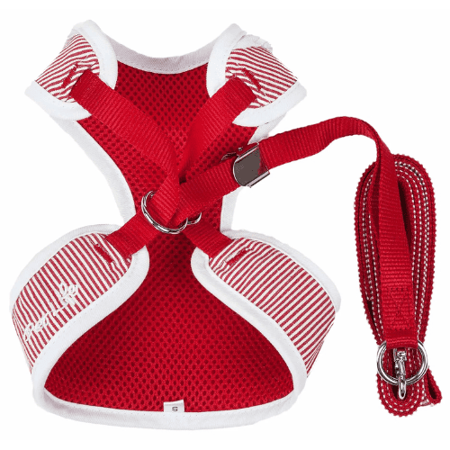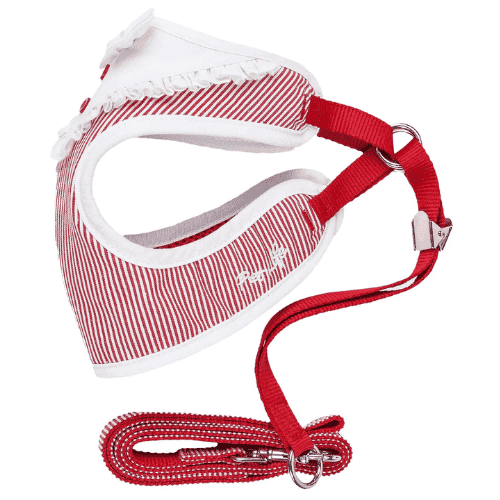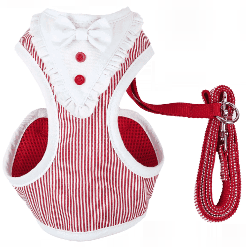 The Pet Life LUXE 'Spawling' 2-in-1 Mesh Reversed Adjustable Dog Harness-Leash w/ Fashion Bowtie features a blended exterior that is reversed with breathable accented Micro-mesh on the Harness for premium comfort. The Harness features well-coordinated stunning vertical patterned stripes that resemble a Kitchen-like smock dress with a well coordinated bowtie that sits above a ruffled smock-like material with wonderfully accented buttoned trims. The back of the harness is completely adjustable with dual stainless steel hooks that connect to the swivel hook on the leash for multi-directional pull. The Spawling harness was specially engineered to limit stress around the stomach by placing light stress around the sternum for proper comfort. Features reinforced stitching for durability. Available in Multiple Sizes and Colors.
