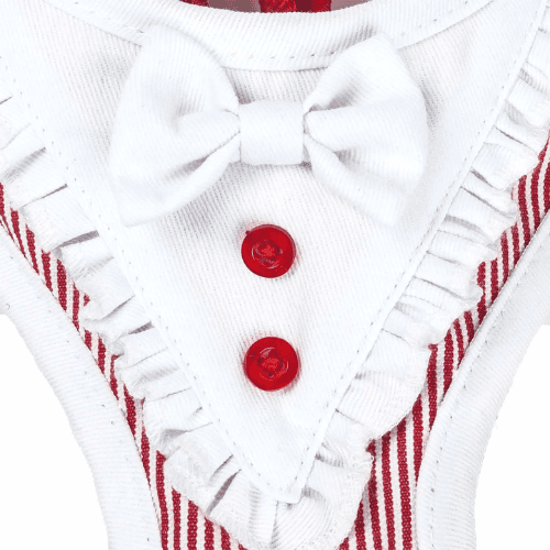 • Features a Stunning white Bowtie with Accented buttoned trims underneath with added ruffles that coordinate effortlessly with the Candy stripe body print. Looks great as a Summer or Year-Round Mock Dress