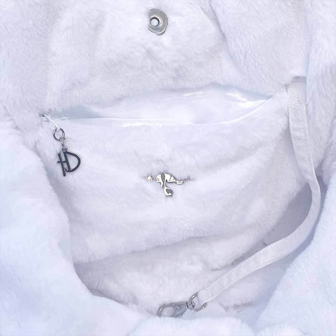 Baby Dog Carrier. Beautifully adorned with hand-placed Swarovski crystals, this carrier sparkles with a touch of glamour that will turn heads wherever you go. Crafted from luxurious diamond quilted fabric and lined with luxurious Big Baby Fabric this carrier seamlessly blends comfort, style, and functionality. Designed with a chic signature satin pocket featuring a high-quality YKK zipper and a secure magnetic clasp closure, this carrier ensures your essentials are always within reach while providing peace of mind. Our built-in tether keeps your cherished pet secured as you navigate the world together.